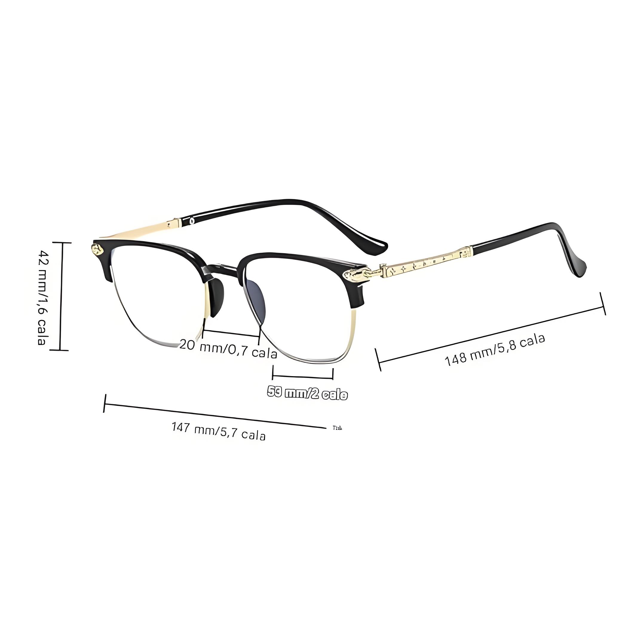 Podkreśl swój styl dzięki wyrazistemu designowi zakrzywionych zauszników, które dodają retro charakteru. Subtelnie zakrzywione zauszniki nie tylko zwiększają vintage appeal, ale również zapewniają wygodne i bezpieczne noszenie. Przyjmij ponadczasowy urok minionych czasów z tymi półokularami do czytania z ochroną przed niebieskim światłem, które bez trudu łączą modę z ochroną oczu.