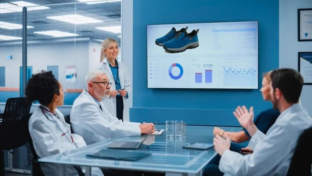 Przestronny czubek i niski krój – idealne przy haluksach, palcach młotkowatych lub odciskach. Wymienna wkładka zapewnia miejsce na własne wkładki ortopedyczne.