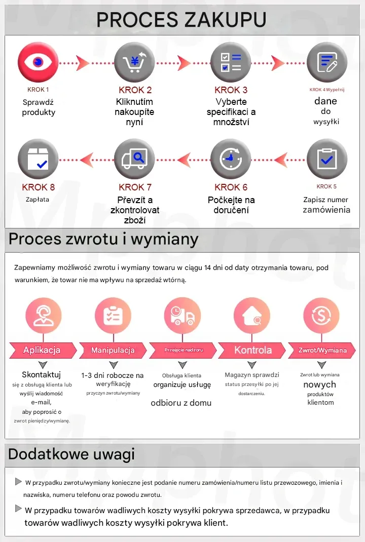Zgodnie z międzynarodowymi przepisami celnymi, darmowa wymiana zamówień międzynarodowych nie jest możliwa. Koszty zwrotów lub wymiany ponosi odbiorca.